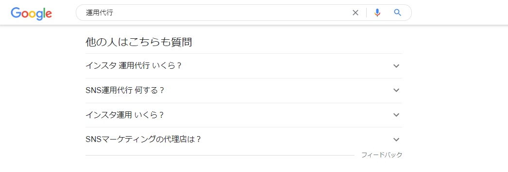 他の人がGoogleで検索しているキーワードを参考に、検索するプロセスを把握し、次の検索キーワードの候補を表示されています。