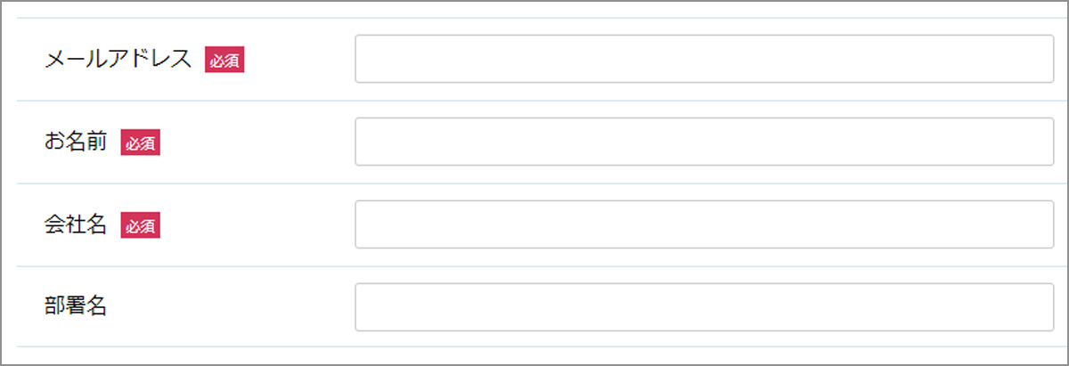希望レベルの情報(企業情報であれば部署、住所であれば建物名など)も求めるのであれば、必須と任意に分けて相対的に項目数を少なく感じさせるのも効果的です。