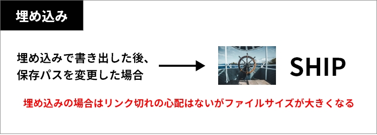 リンクでの書き出しの注意事項としては、画像のファイルパスが参照できないとリンク切れを起こすので、注意が必要です。