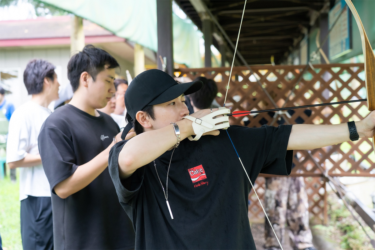 初めて弓を引いてみると、想像以上に力が必要でびっくり!白熱した勝負が繰り広げられました。