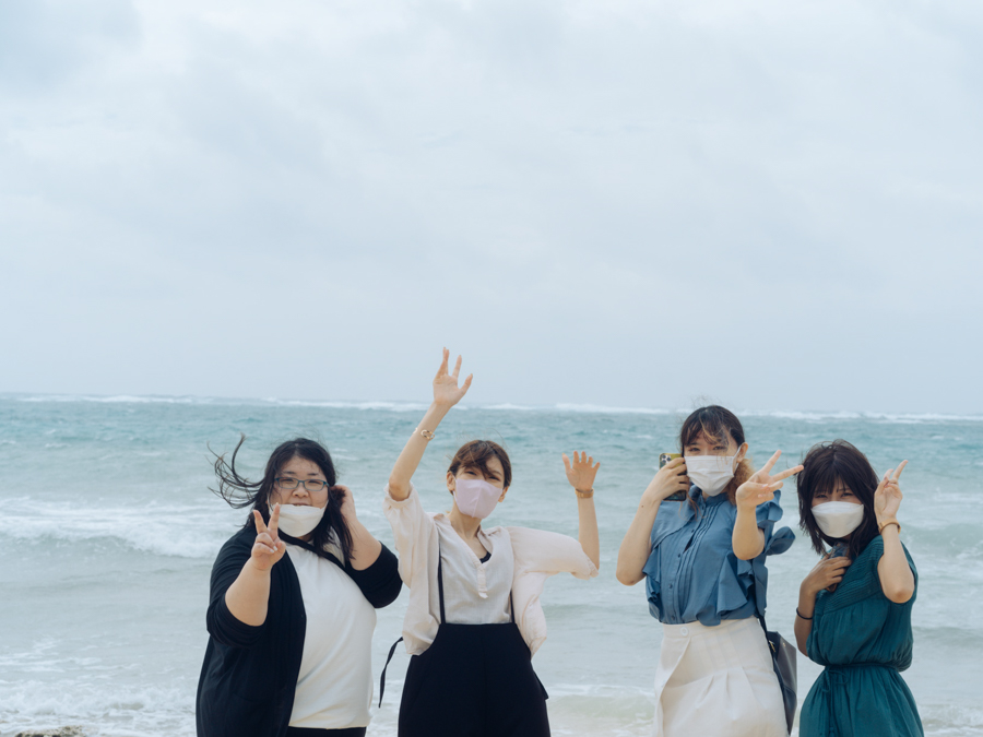 鍾乳洞組はオーシャンビューのカフェでお昼を食べた後に海辺に行ったとか…。