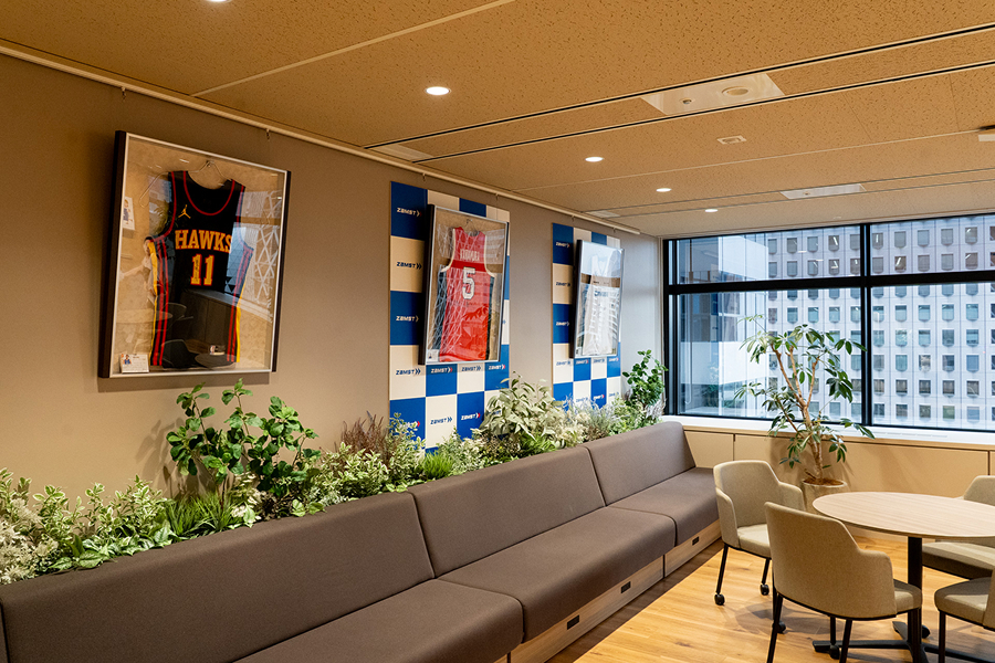 オフィスには契約選手のサインがたくさん!